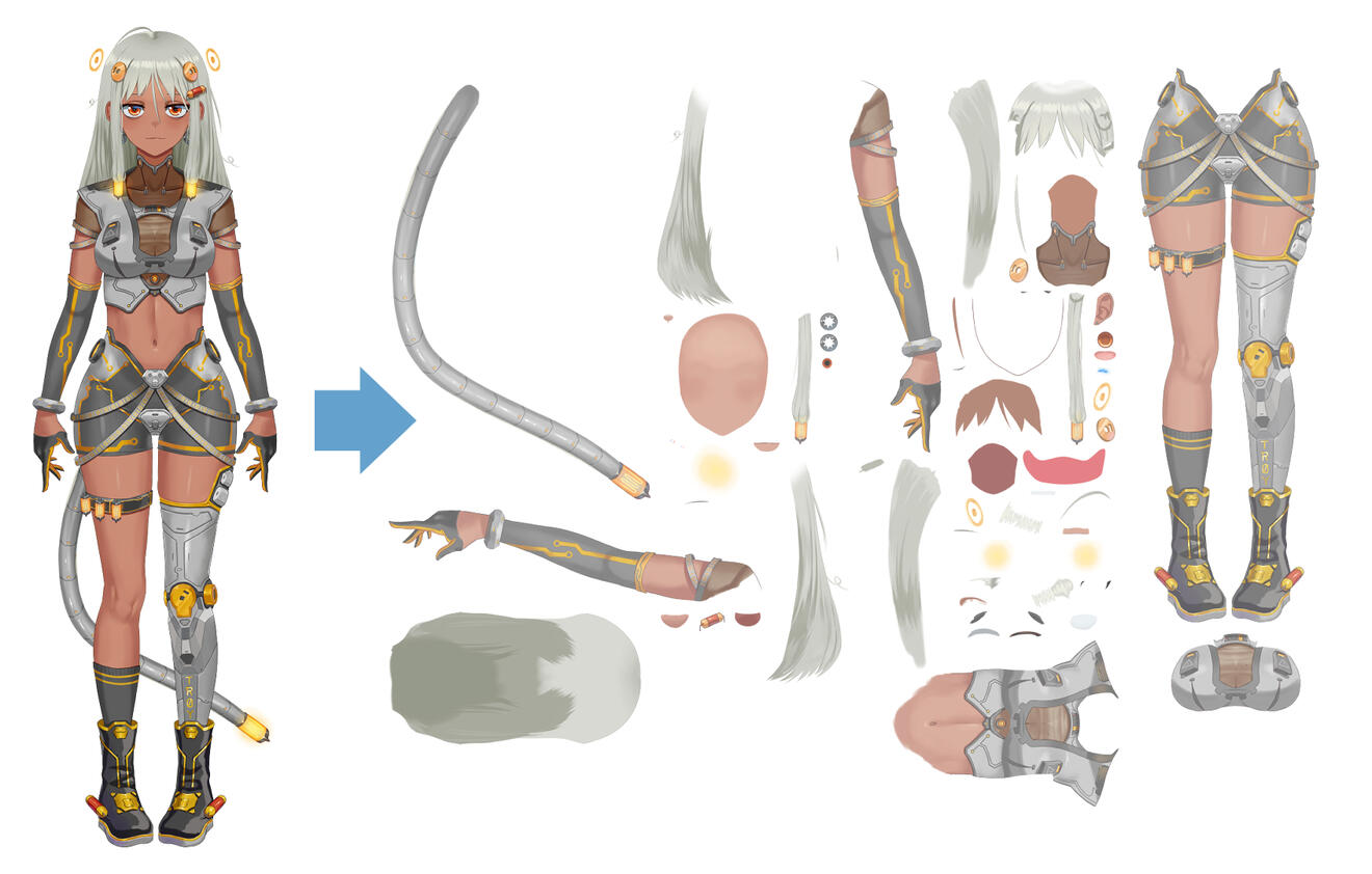 Please consider that character sheets are flat images and not prepared to be converted into Live2D models.